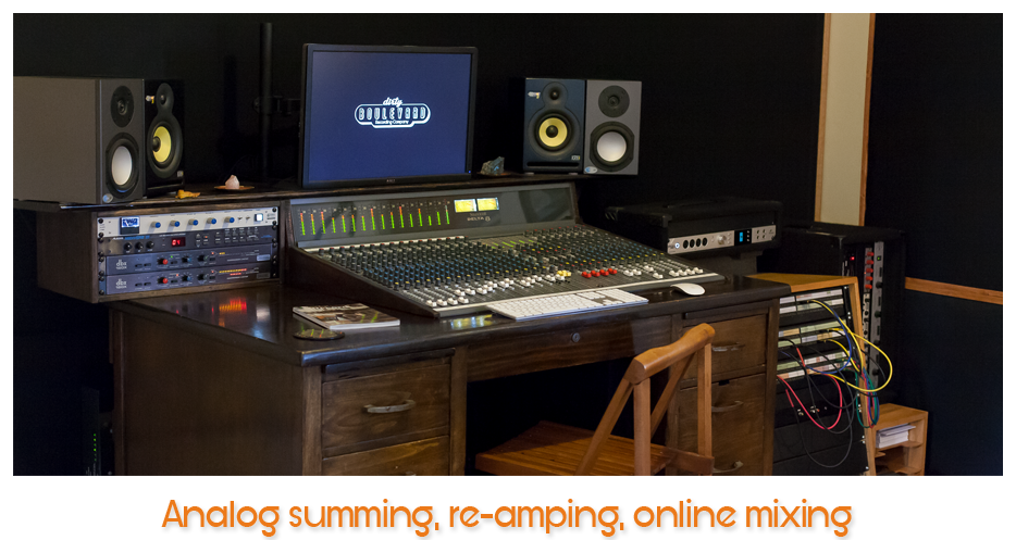 Dirty Boulevard is happy to offer analog summing for artists that find it unnecessary to buy outboard gear or invest in a console. Now any artist or producer can add analog punch to their tracks. We'll mix your stems on our modified Soundcraft console, which features an incredibly wide soundstage and crosstalk specs in excess of -90dB. Our hybrid approach retains the full detail and depth of your mix, and will avoid the "mushy" sound of mixing in-the-box. Unlike popular, low-cost “analog summing boxes,” summing on a full console allows each track to be panned individually instead of resorting to pre-mixed stereo stems.